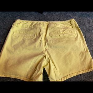 Bright yellow cotton American Eagle shorts size 4 midi stretch. There is one stain on the back pocket and one stain in the front as you can see on the photos however the shorts have been barely worn.