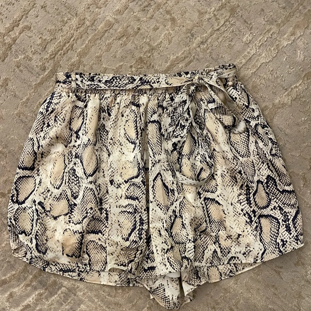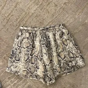 Snakeskin printed shorts. very float/flattering! a silk type of fabric on the outside. excellent condition