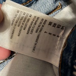 Very cute distressed shorts. Back pocket is supposed to be missing. Barely worn. Great condition