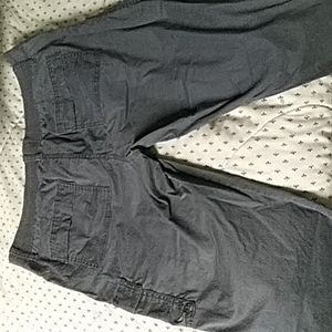 Bermuda style shorts with one cargo pocket. these are a 14P. waist is stretchy. one flaw with stitching as seen in pictures.