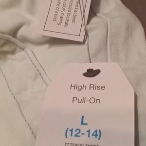 Time and Tru Woman's Sunwash High Rise Pull On Belted Utility Shorts