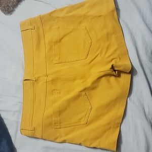 never worn stretchy mustard yellow shorts size large perfect for vacation or spring/summer artificial pockets at front