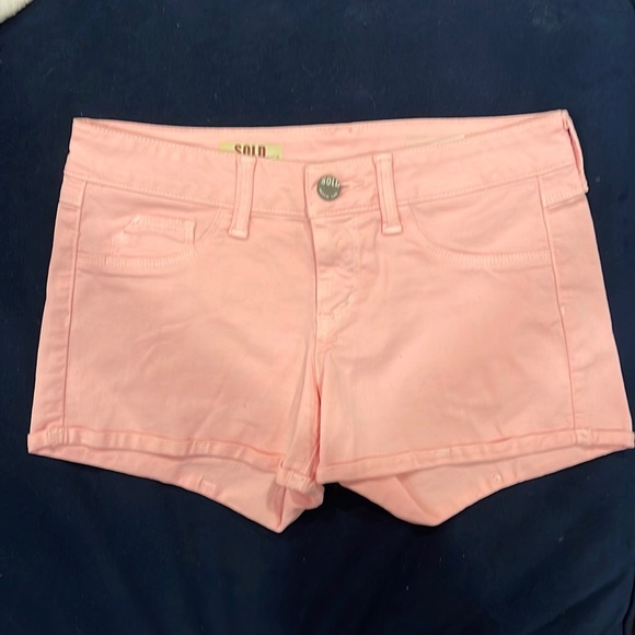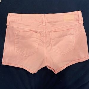Pink shorts, size 26 with lots of stretch. Style is bleeker baby short. Pink is much brighter than it appears in photos.