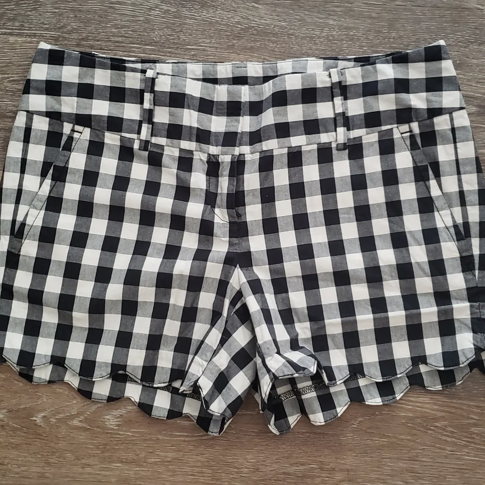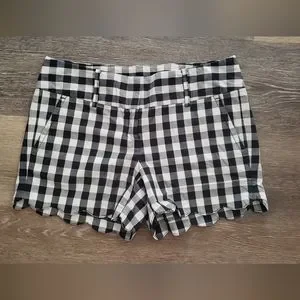 Black and white check 3.5 in shorts. 100% cotton. Very comfy with scallop hem on shorts. Gently used.