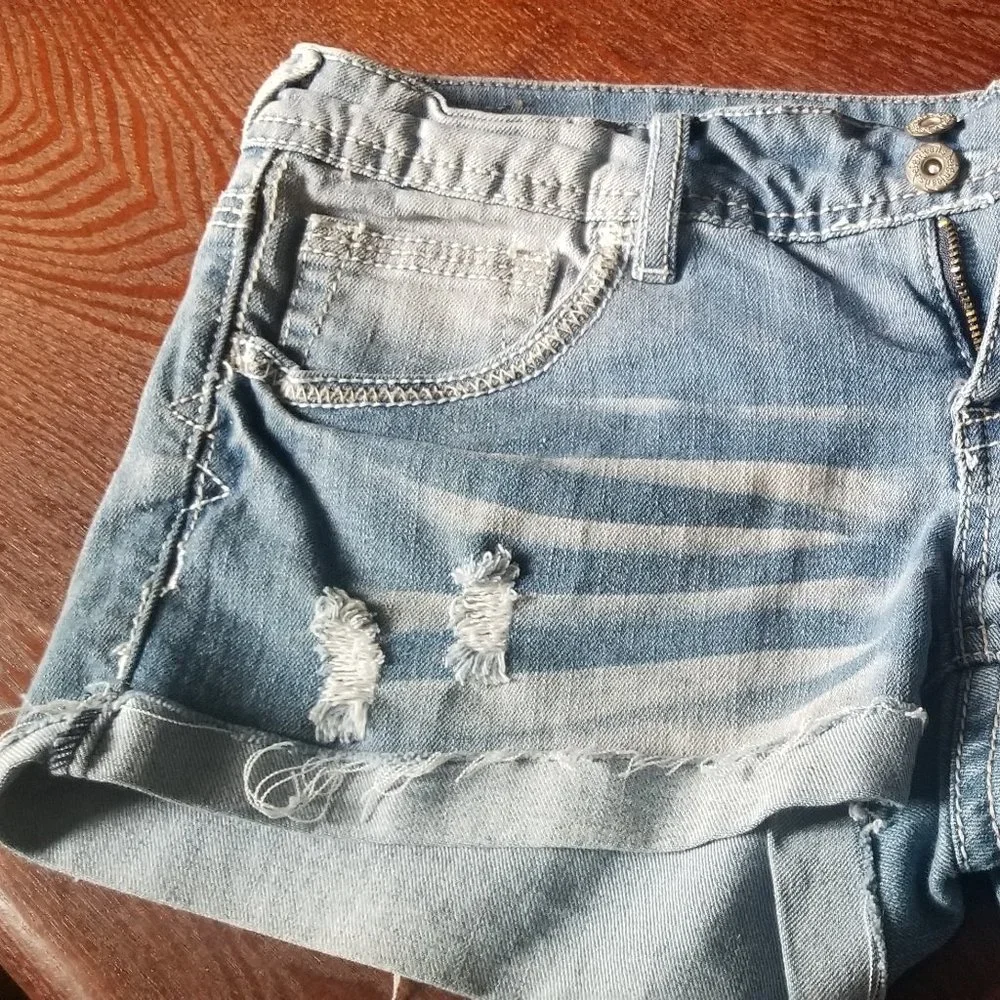 Reign Jean shorts size 9 womens in this brand, good condition, diamonds on back pockets, light blue