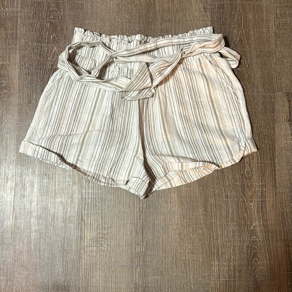 Striped shorts with belt. Tan color. Excellent condition, no stains. Smoke free home.