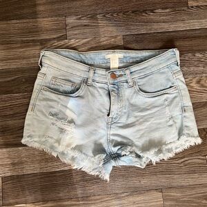 Distressed denim shorts