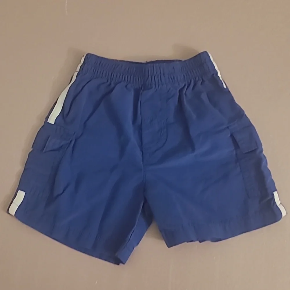 Faded Glory shorts, bright blue with 2 white stripes on each side, also has a pocket on each side.