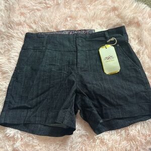 Dark denim shorts , new with tags. Size 12 Some stretch . Color is between a dark denim or almost black