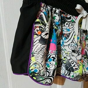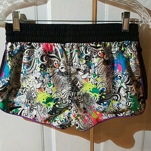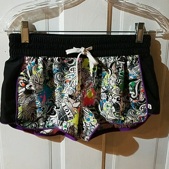 Shorts with elastic waistband and drawstring by Op with purple piping. NOT FADED. SMOKE FREE HOME. Size Juniors Small (3/5). Great for exercising or wear over your swim bottoms to the pool. Great for summer or indoors!