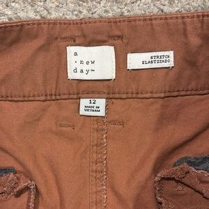 Casual shorts A New Day (Target) size 12, very pretty burnt sienna color with 3.5” inseam. Wrinkled from storage but no flaws. Slight stretch to material with 2% spandex, very comfortable and flattering