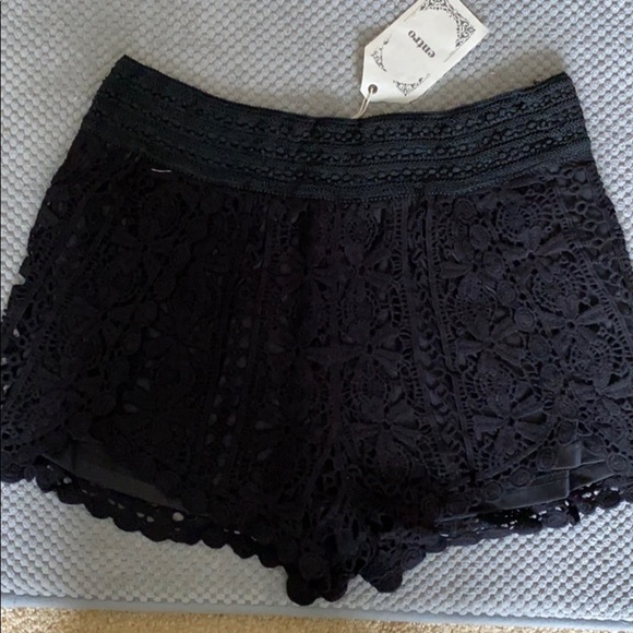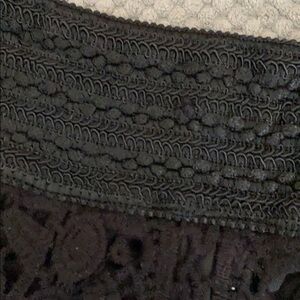 Black lace shorts. Picture looks grey but they are definitely a rich black color. Wide elastic waistband fully lined