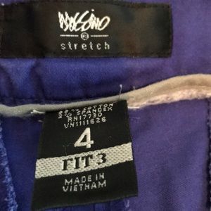 Blue shorts , cuffed, front and back pockets (closed) zipper front