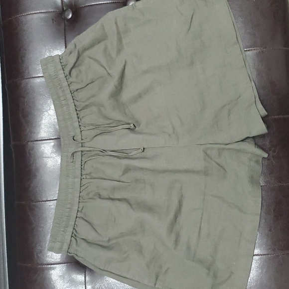 olive green summer shorts with drawstring and comfy pockets.