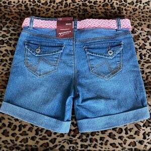 Shorts Girls Arizona Jean Company Midi Cuffed Denim pockets pink belt 12 NWT C