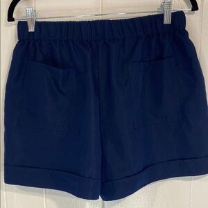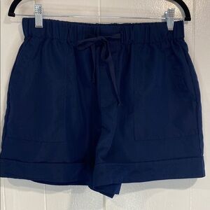 Shorts High Waist Lux Look Cargo Style Front and Back Pockets Tie Waist Faux Cuff Stylish Navy Size Large