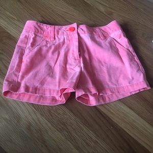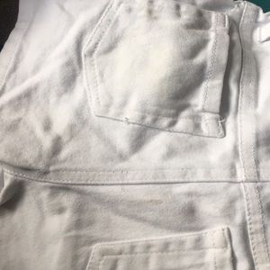 Melon color shorts are a little faded they are he color in the cover pic... white shorts with pink emblem in the back pocket and diamond button the white shorts have some stains on the back shown in the last pic. 💕