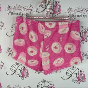 Cozy and stylish pink shorts featuring a fun donut print. Perfect for lounging or casual outings. No tags. Unsure of exact size see measurement.