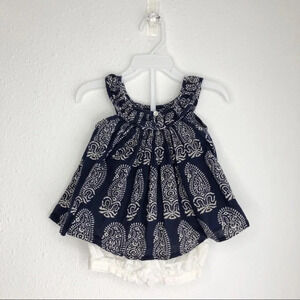 Shorts outfit Peek sleeveless blouse navy and H&M shorts white size 6-12 months