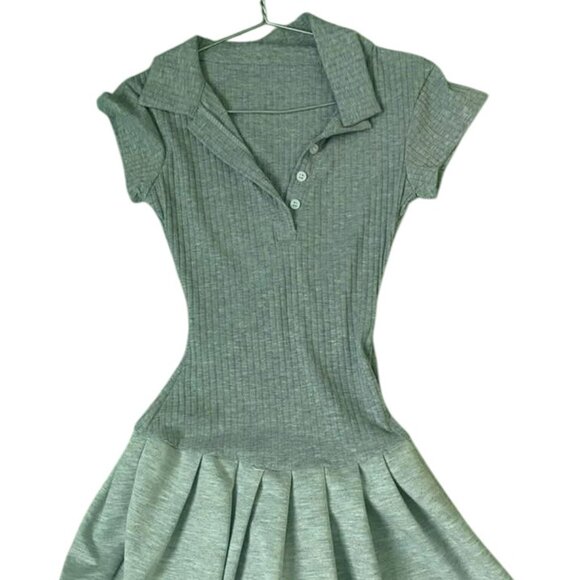 Cute short-sleeve knit dress featuring a soft, stretchy top and a playful puffed skirt. Comfortable and flattering, perfect for casual outings, daily wear, or a sweet feminine look. Easy to style with sneakers or sandals.