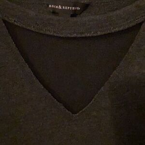 Cute sweat short top. Short sleeved. Dart gray with sheet inset at neck/chest