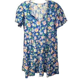 Shoshanna 100% Cotton Tiered Mini Dress Blue Floral XS Lightweight Garden