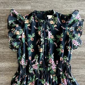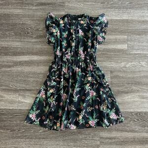 Shoshanna Amora 100% Silk Chiffon Dress Black Floral Ruffle Size 4 Fit & Flare