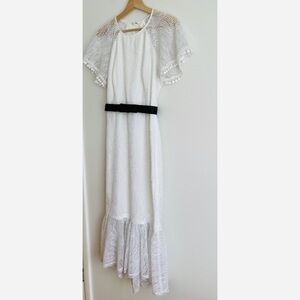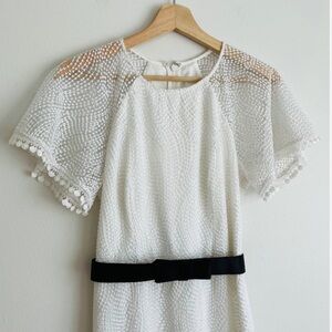 Shoshanna -Belted Bow Midi Dress in Net Dobby White