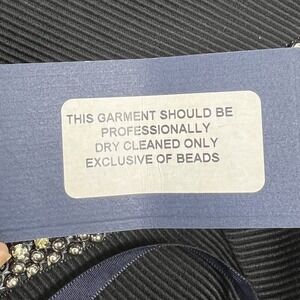 -Stunning strapless mini dress with light boning in bust and silver beaded and faux diamond embellishments on bodice and waist.