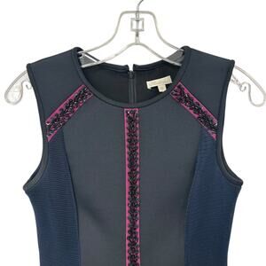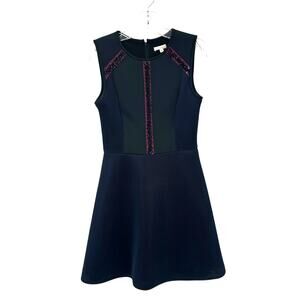 Shoshanna Black Navy Pink Sleeveless Beaded Fit & Flare Mini Dress Womens 0