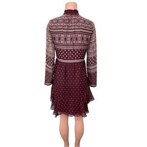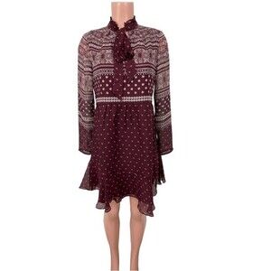 Shoshanna Braemar Tie-Neck Long-Sleeve Printed Chiffon Silk Boho Dress Size 4