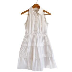 Shoshanna Collared Tiered Sleeveless Button Shirt Dress Fit and Flare White 4
