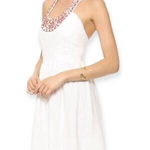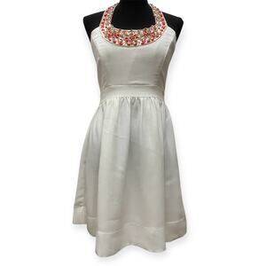 Shoshanna Colony Sleeveless Beaded Jewel neck Halter Cocktail White Dress Size 6