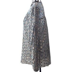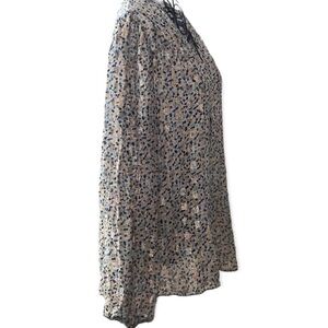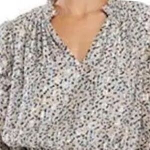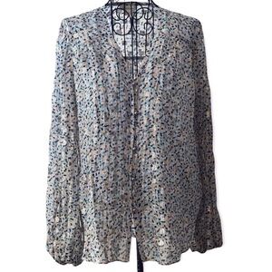Shoshanna Confetti Silver Clip Metallic Print Sheer Pleated Long Sleeve Blouse