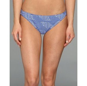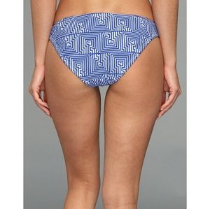 Printed bottom ($66) flaunts a striking geometric pattern throughout/ moderate rear coverage / lined/ 80% nylon 20% spandex/ lining: 95% Polyester 5% spandex
