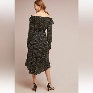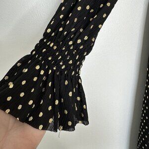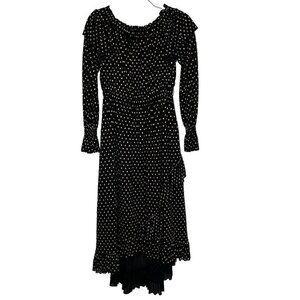 Shoshanna Dress Medley off the shoulder polka dot black gold ruffle size 6
