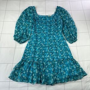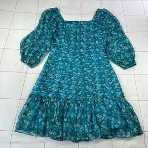 Shoshanna Dress Womens 2 Mystic Blue Gold Metallic Cassia Square Neck Mini Party