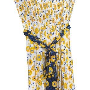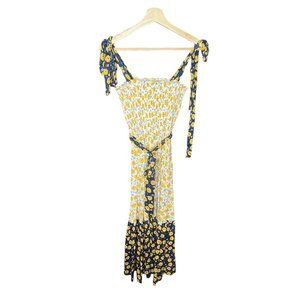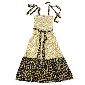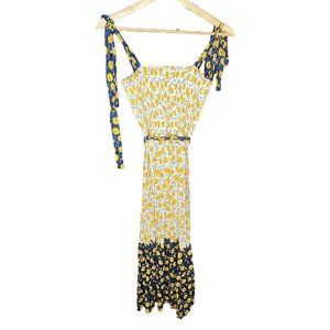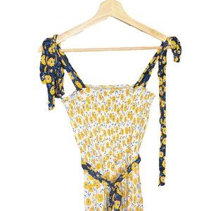 Shoshanna Floral Tiered Midi Tie Shoulder Dress White Navy Medium Cottagecore