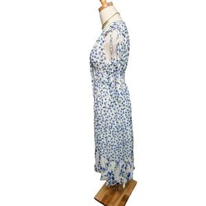 Shoshanna Helena Floral Tie Shoulder A-line Midi Dress size 4 optic white/purple