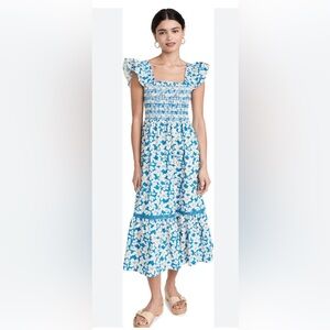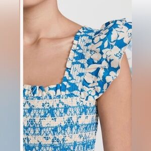 Shoshanna Hilma flutter sleeve smocked midi dress size 14