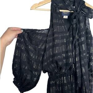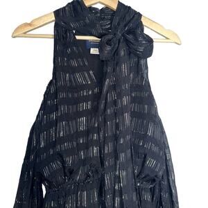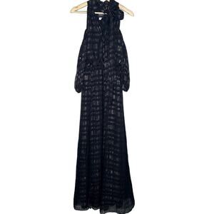 Shoshanna Laurel Cold Shoulder Tie Neck Evening Gown Silk/Metallic Black Size 2