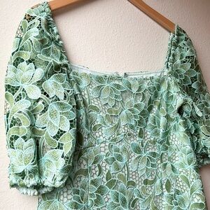 Shoshanna Layne Lace Puff-Sleeve Mini dress Green Light Blue Sz 12