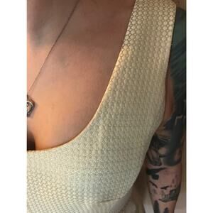 Textured jacquard dress with metallic thread. Lined. Has pockets ! Could be worn for prom, as a wedding dress, for bridal shower, rehearsal dinner or any formal event.