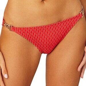 Shoshanna Metallic Print Chain Swim Bikini Bottom Women's Size L Red