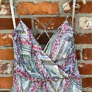 Shoshanna Mia Silk Mini Dress Geometric Diamond Print Size 10 Spaghetti Strap