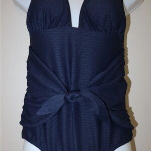 Shoshanna 21TX7455 Women's Sz 4 Navy Textured Tied One Piece Swimsuit