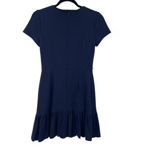 Shoshanna Navy Short Sleeve Ruffle Drop Hem Dress Womens 4 *NO BELT*
