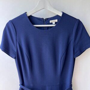 Shoshanna Navy Short Sleeve Ruffle hem belted sheath Dress, Size 6 O40