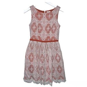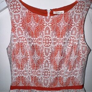 Shoshanna Off-White Lace Dress with Orange Lining Sleeveless Cocktail