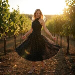 NEW Shoshanna Olivia Metallic Scallope Mesh Halter Neck Black Dress